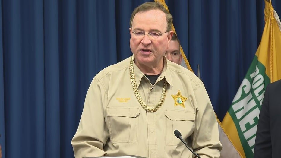 WINTER HAVEN, Fla. - On Friday, Polk County Sheriff Grady Judd wore a thick gold chain around his neck, a matching bracelet and waved around a gun during a press conference to make a point about the dangers of drug trafficking.