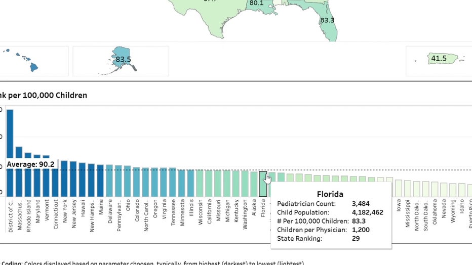 According to the American Board of Pediatrics, Florida is below the national average for pediatricians, with just 83 for every 100,000 children.