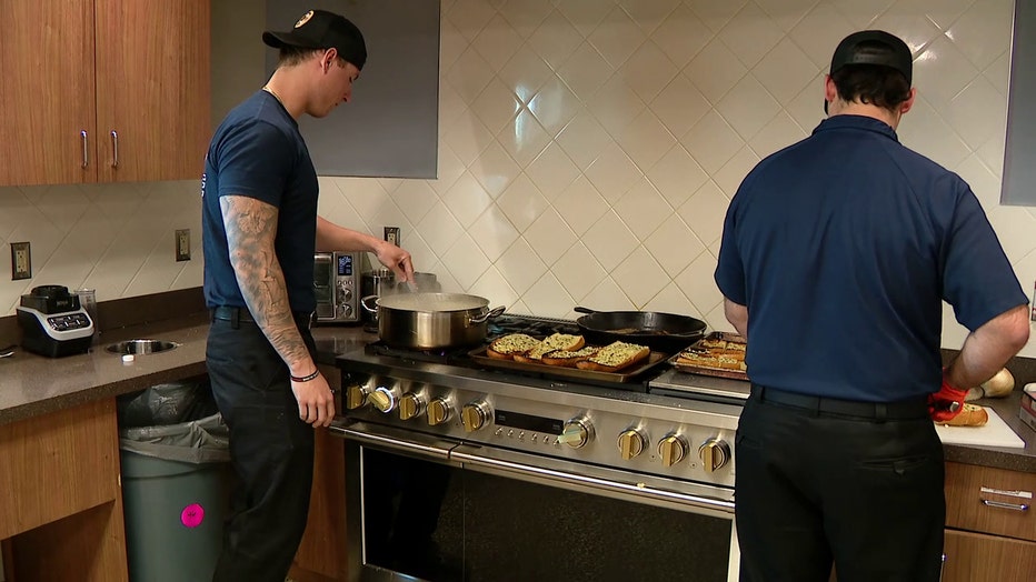"Today, the lunch that we had, we had burgers. The meat was on sale for that and then most of the ingredients for the chicken marsala was on sale as well. So, that’s why we ended up doing that," said Travis. "Every station, what we do is everyone puts in $20 and that’s the food bill for the day."