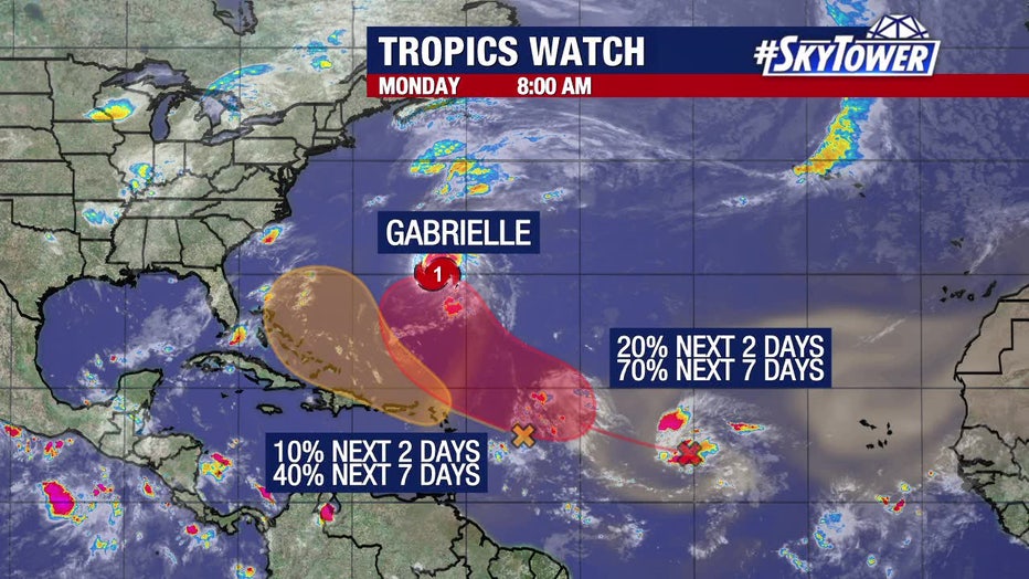 FOX 13 meteorologists say Gabrielle will pass over 100 miles east of Bermuda. There is high confidence in its eventual turn northeastward towards the North Atlantic and far away from the United States.