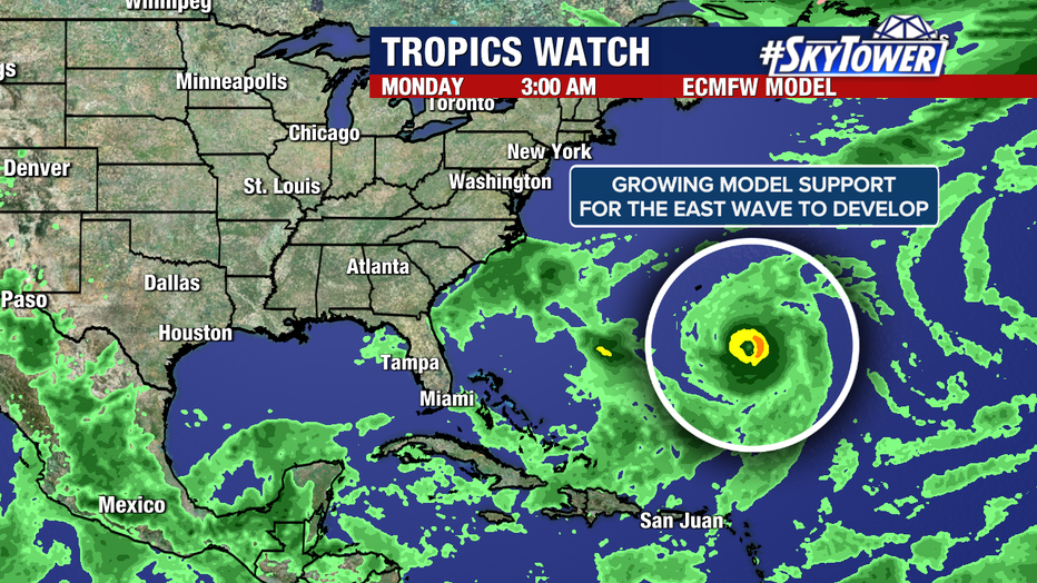 While both systems need to be watched closely this week, the NHC has stated the eastward wave is more likely to form. That area appears to be more conducive for storm development over the next several days.