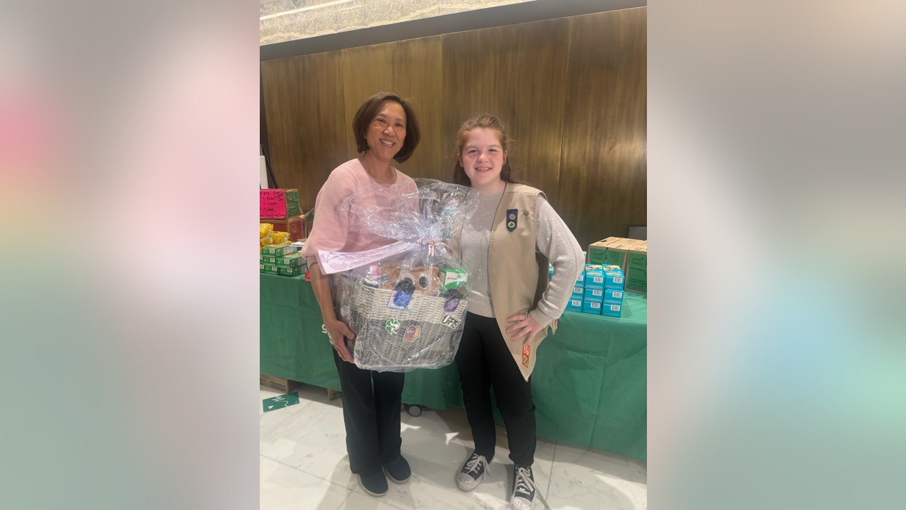 The customer who purchased her 100,000th box received a very special basket filled with a variety of cookies, Girl Scout merchandise and a heartfelt thank-you note.