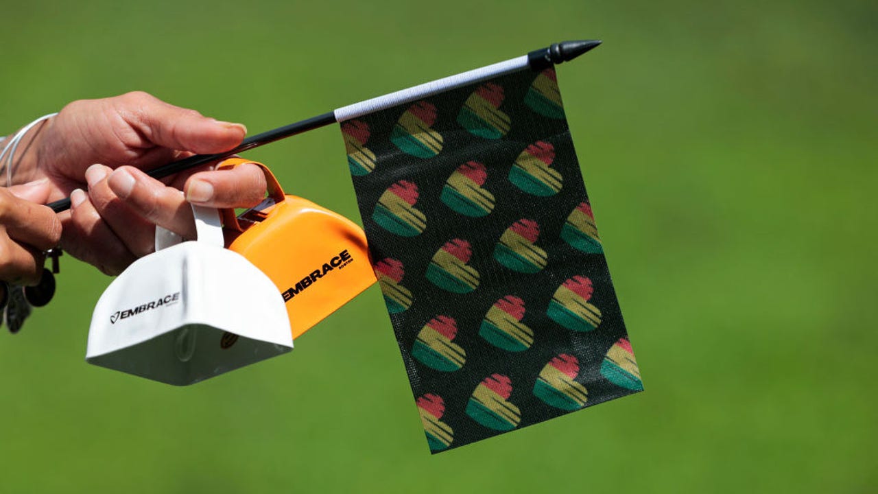Boston, MA - June 14: A spectator holds noise makers and a Juneteenth flag, during the speaking program. The first Juneteenth Concert is held near The Embrace sculpture, on Boston Common. (Photo by Pat Greenhouse/The Boston Globe via Getty Images)