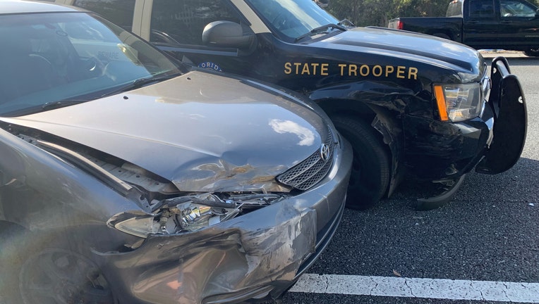 BROOKSVILLE, Fla. - An Apollo Beach man was taken into custody after troopers say he intentionally crashed into two patrol cars while leading them on a tri-county chase.