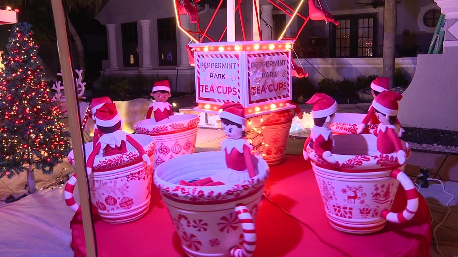 LAND O'LAKES, Fla. - When the sun goes down in Land O’ Lakes, the Mueller family’s home transforms into a full-scale North Pole, complete with gingerbread cottages, Santa’s Village, a post office, cinema, and even a scavenger hunt that begins in "Peppermint Park."