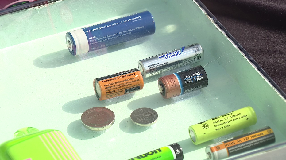 "Never place these batteries, lithium-ion or charged batteries, in the trash because they can and likely will start a fire. It literally only takes one battery to do this," Gallagher added. "You can come bring them to us. We encourage you to tape and separate them. We have bags, and we'll do that for you as well: Tape the terminal so they don't touch other metals or other batteries that can create that spark."