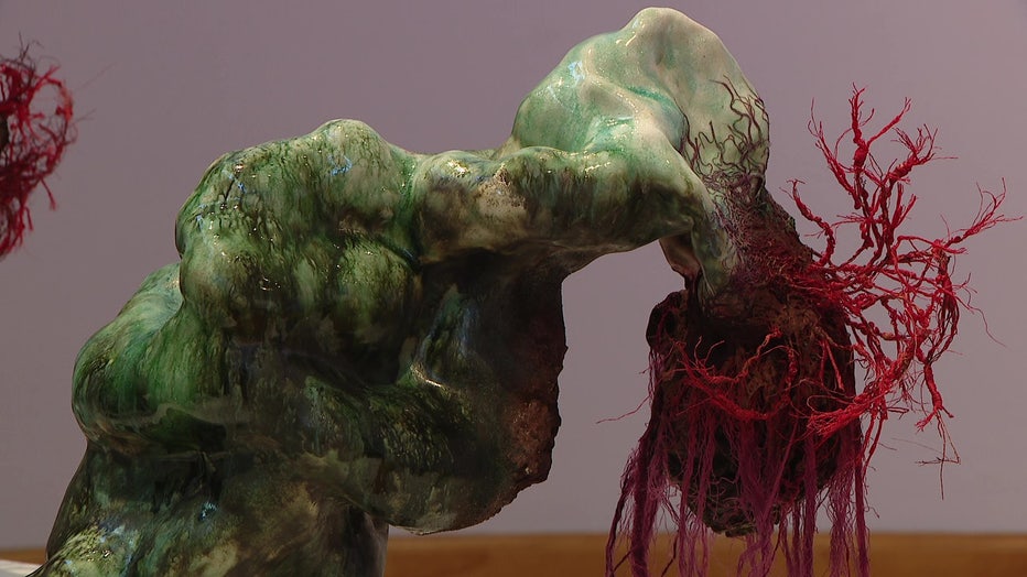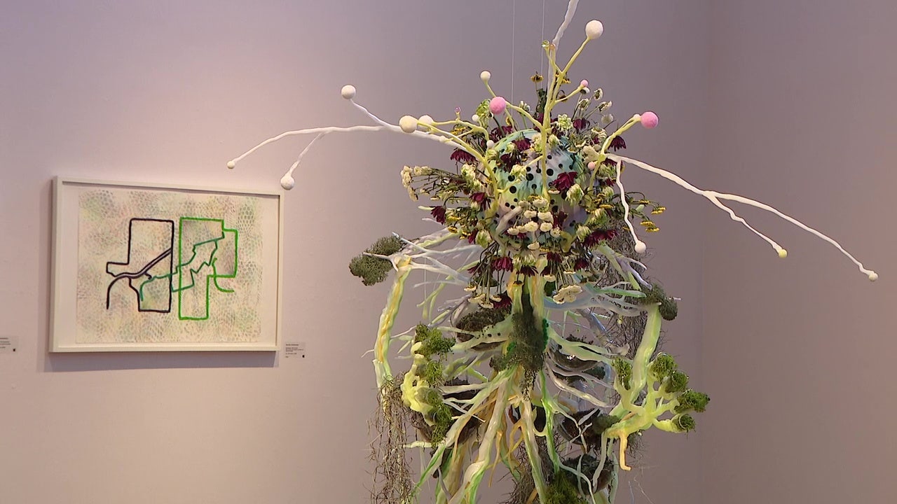 "The live plants and the non-live plants, the preserved plants, coincide together to be representations of both growth and decay. I was hoping that people would see the way that these plants were originally alive, but now are kind of memories that are falling off but the face that's behind it will always be the same," Davis said. "There's a little bit of blending but at the same time, it's trying to get accustomed to your landscape."