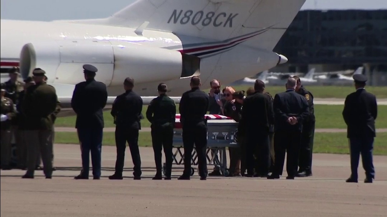 A procession was held for U.S. Army Reserve Maj. Cody Khork Wednesday afternoon after his remains were transferred from a small charter jet to a hearse at Lakeland Linder International Airport.