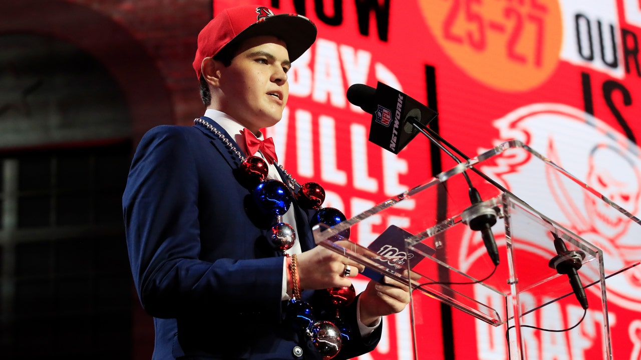 NASHVILLE, TENNESSEE - APRIL 25: Kacey Reynolds announces the Tampa Bay Buccaneers #5 overall draft pick during the first round of the 2019 NFL Draft on April 25, 2019 in Nashville, Tennessee. (Photo by Andy Lyons/Getty Images)