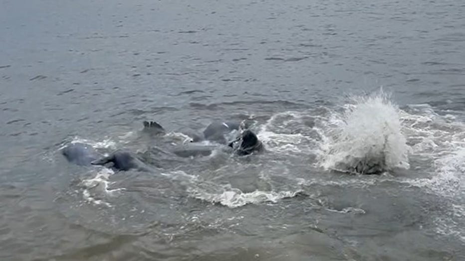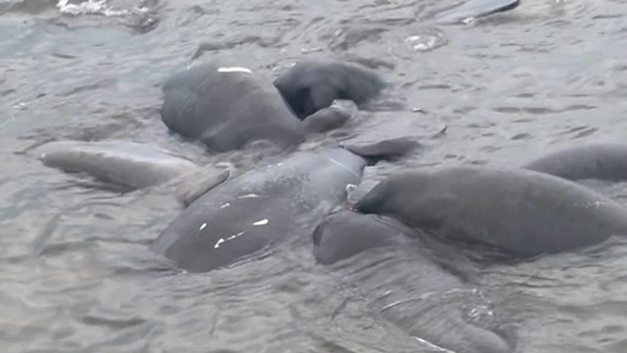 Manatees off of Bayshore Boulevard put on a show for onlookers