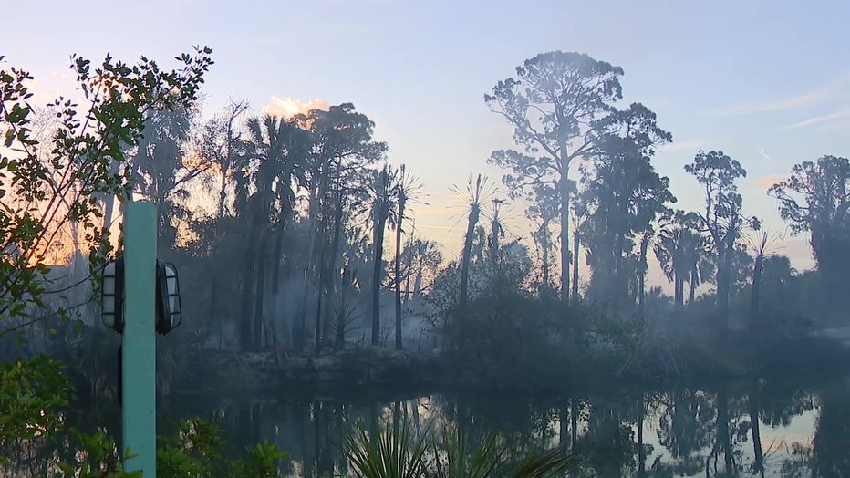 A massive brush fire in Hernando County is still burning on Monday morning. Parts of the Tampa Bay Area are still under a burn ban. FOX 13's Kellie Cowan reports.