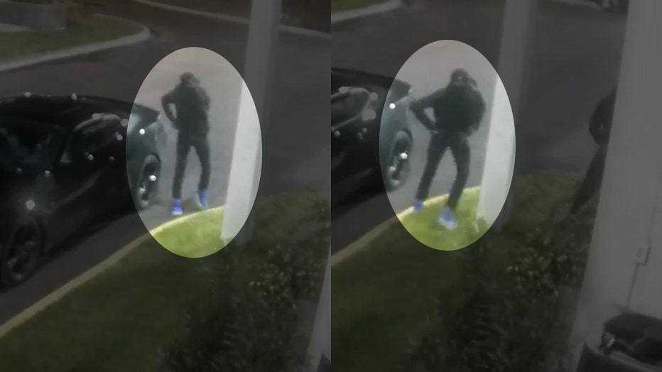 The suspects' faces were concealed, but police hope someone recognizes the Camaro or one of the suspects' bright blue shoes.