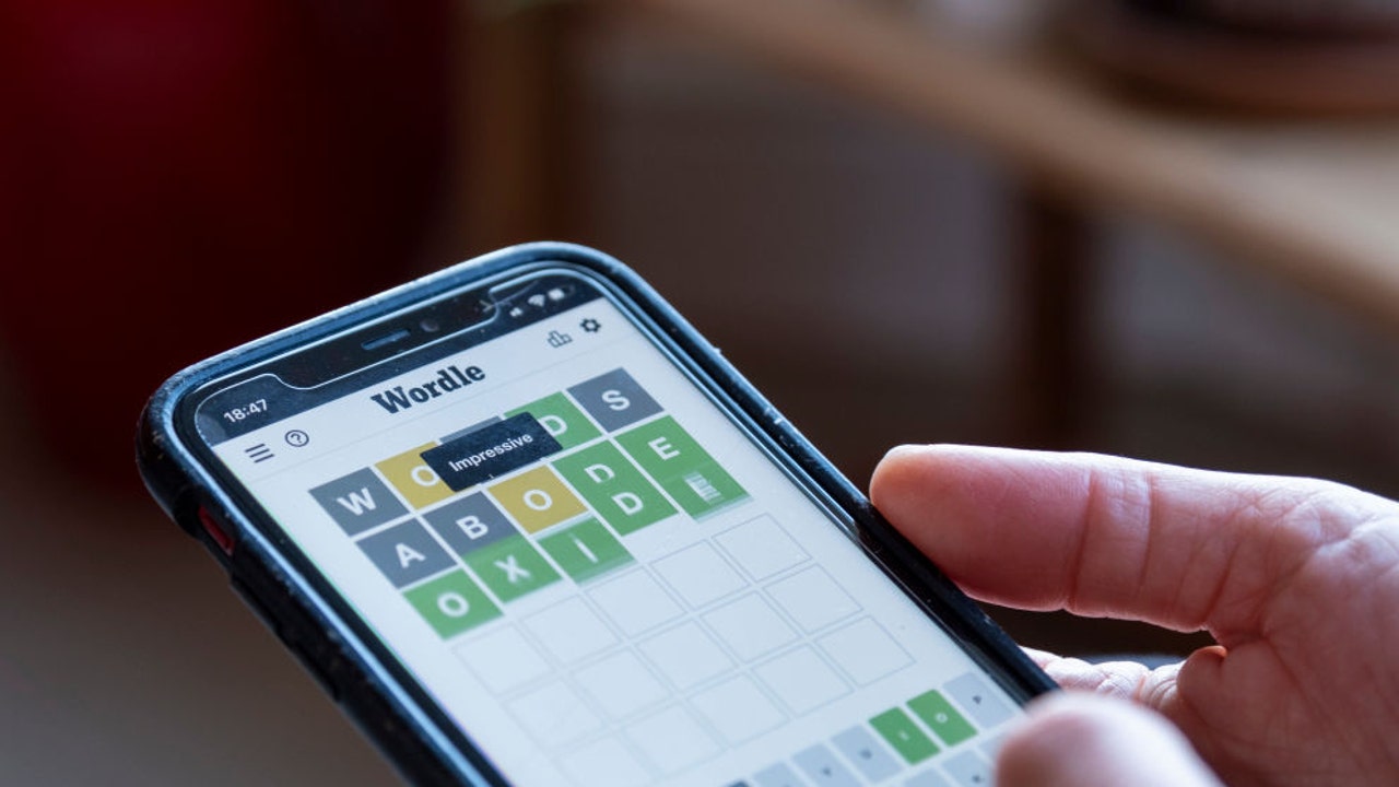 FILE-A woman plays Wordle on her smartphone. Wordle is a web-based word game played by millions of users / players worldwide often on their mobile devices. (Mike Kemp/In Pictures via Getty Images)