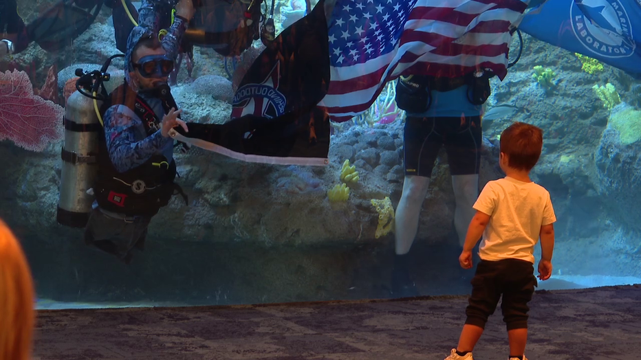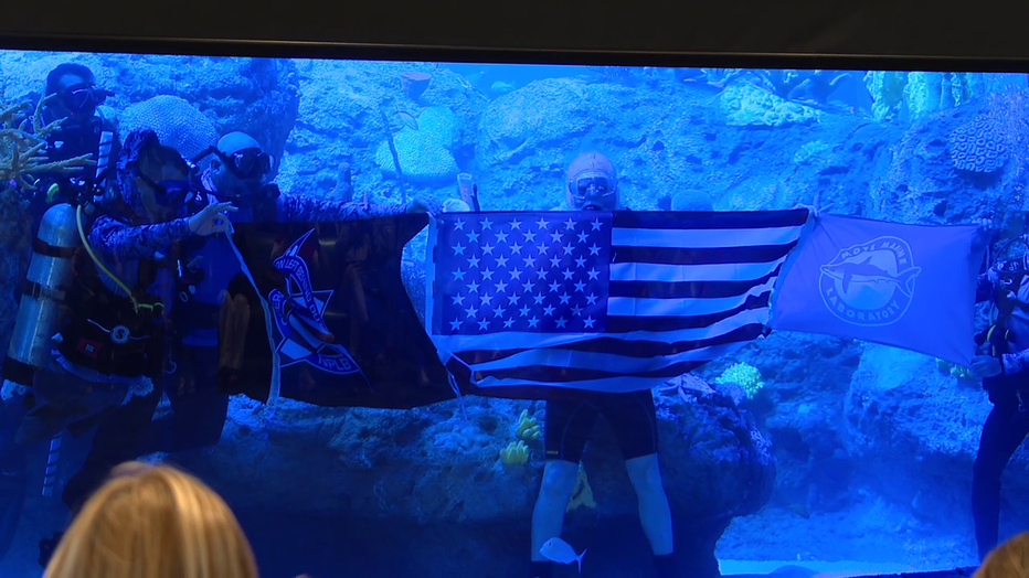 It was a moment to honor and celebrate those who've served our country. The partnership extends outside the aquarium where veterans are working to help save Florida's coral reef system.