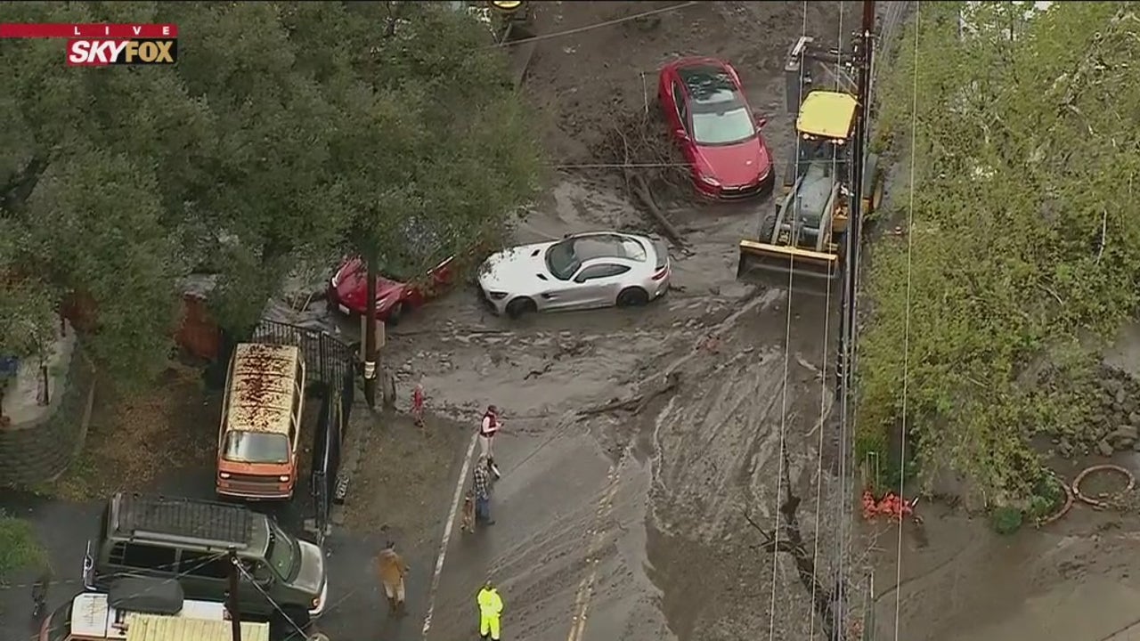 Several vehicles were swept away in the mudslide, video from SkyFOX showed.