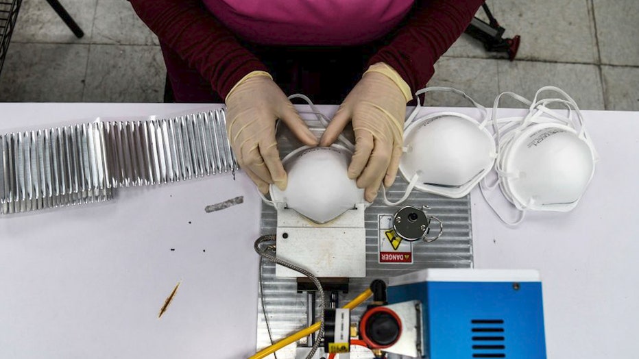 FILE - Employees work as they make respiratory masks in a family-owned medical equipment factory in north Miami, Florida on Feb. 15, 2021.