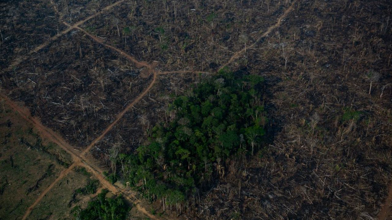 Aerial view showing a deforested area of Amazonia rainforest in Labrea, Amazonas state, Brazil, on September 15, 2021.