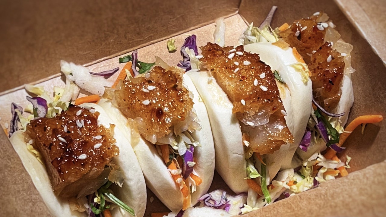Traditional Hmong-style steamed bun stuffed with ground pork, egg and spices – a recipe from Chef Yia Vang’s mom. Served with choice of Krunchy Chili Oil, Kua Txob Hot Pepper Sauce or Lemongrass Scallion Dressing. At Union Hmong Kitchen, located at the International Bazaar, south wall, west corner.
