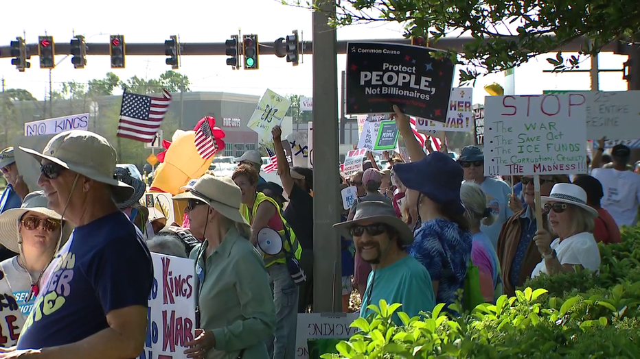 TAMPA, Fla. - Protesters across the Tampa Bay Area joined thousands nationwide, and around the world, in a coordinated "No Kings Day" demonstration, calling for change and unity.