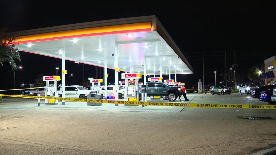The two carried on a conversation before the victim walked away to speak with someone else at the gas station.