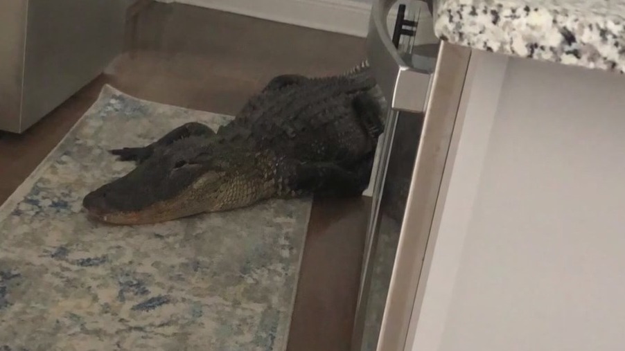 The alligator made it from her hallway and appeared to get stuck in her kitchen.