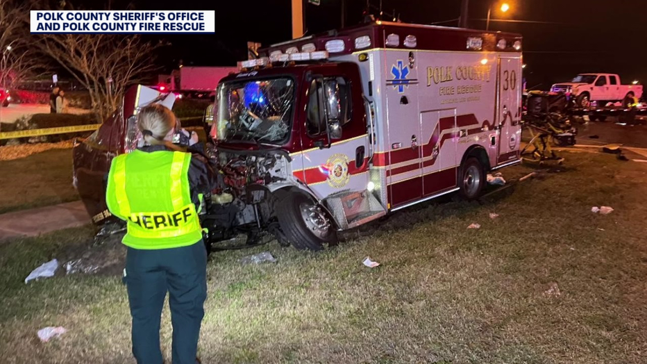 WINTER HAVEN, Fla. - A Polk County Fire Rescue paramedic remains in the hospital after the ambulance he was riding in collided with a pickup truck.
