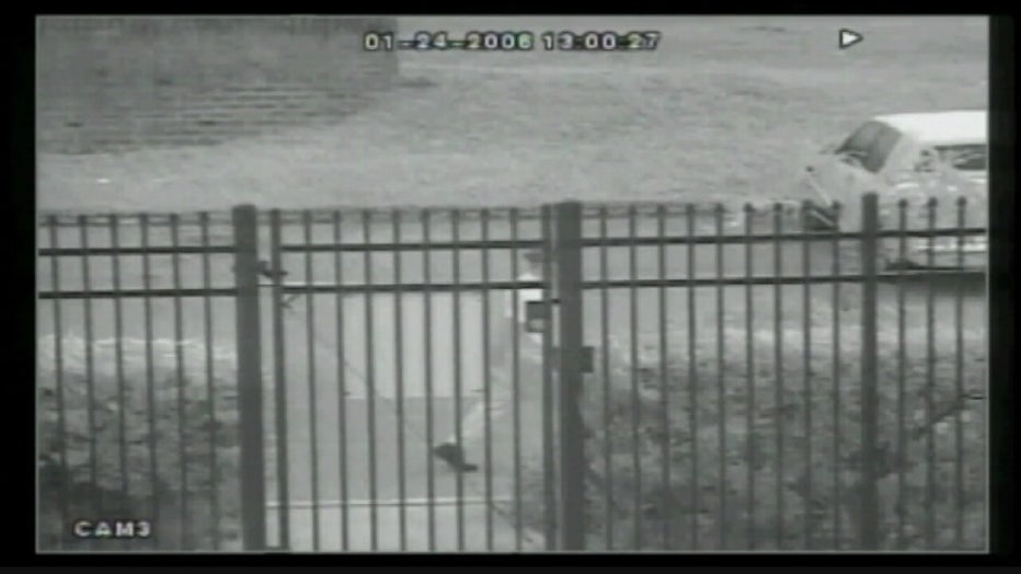 Surveillance video shows a potential person of interest parking her car and walking away.