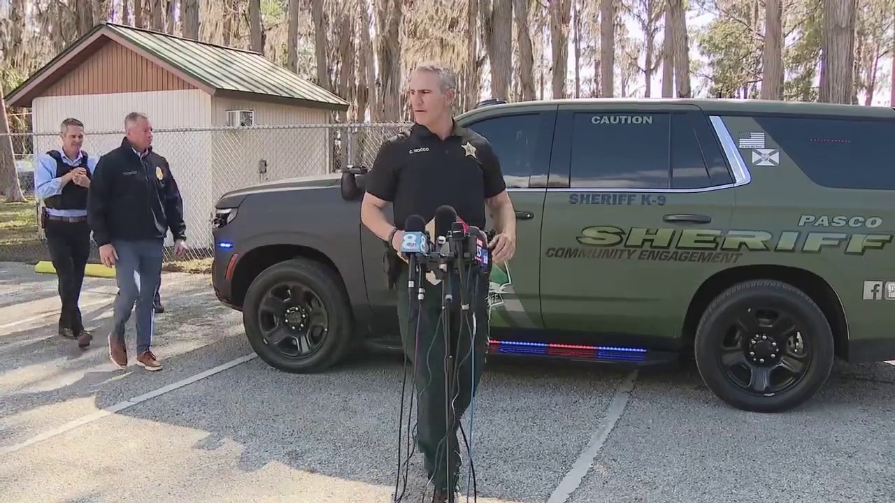 Pasco County Sheriff Chris Nocco gives an update after a deputy was shot by a suspect accused of shooting and killing a man who was clearing a piece of land across from his home.