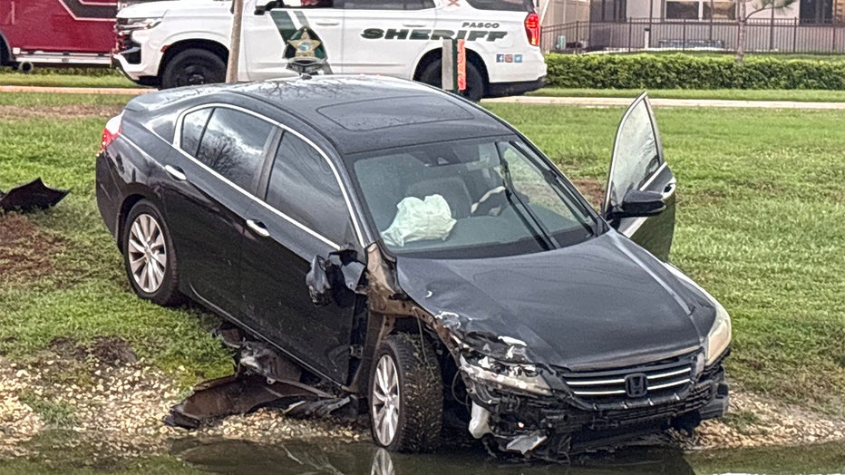 After the crash, the Honda traveled onto the roadway shoulder and partially into a nearby pond before coming to a stop, according to FHP.