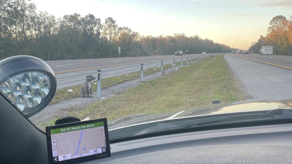 Shortly before 7:10 a.m., a passerby reported seeing a gray pit bull standing in the median of I-275 north of the Bearss Avenue exit.