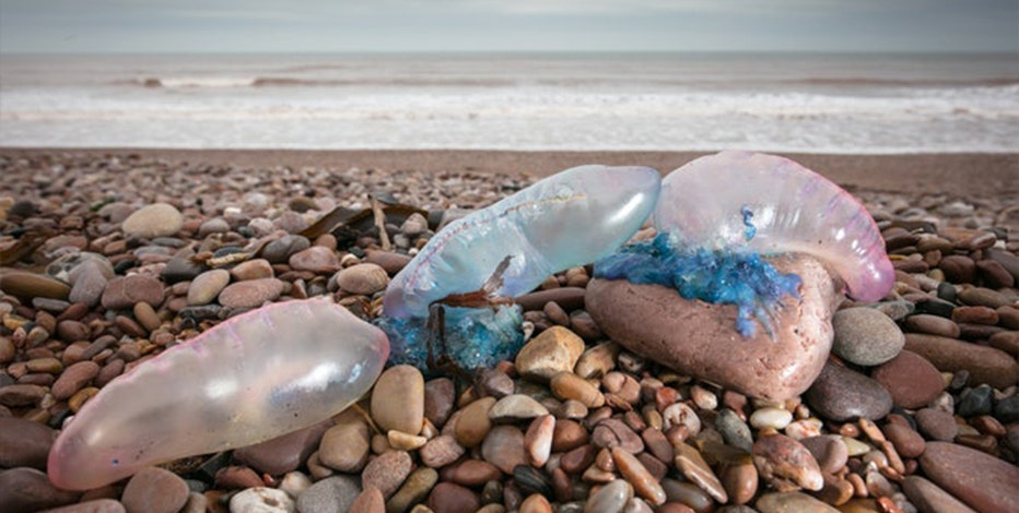 Portuguese men o' war washed up on a beach. (Matt Cardy/Getty Images / Getty Images)