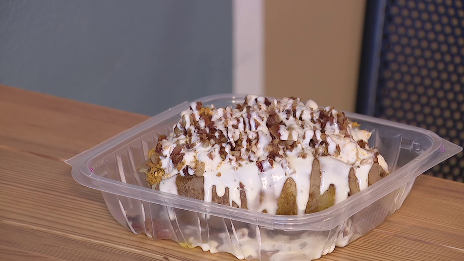 "We have some baked potatoes inspired in the American food," Ortiz said. "So, we got the bacon chicken ranch, the cheeseburger and the pulled pork coleslaw."