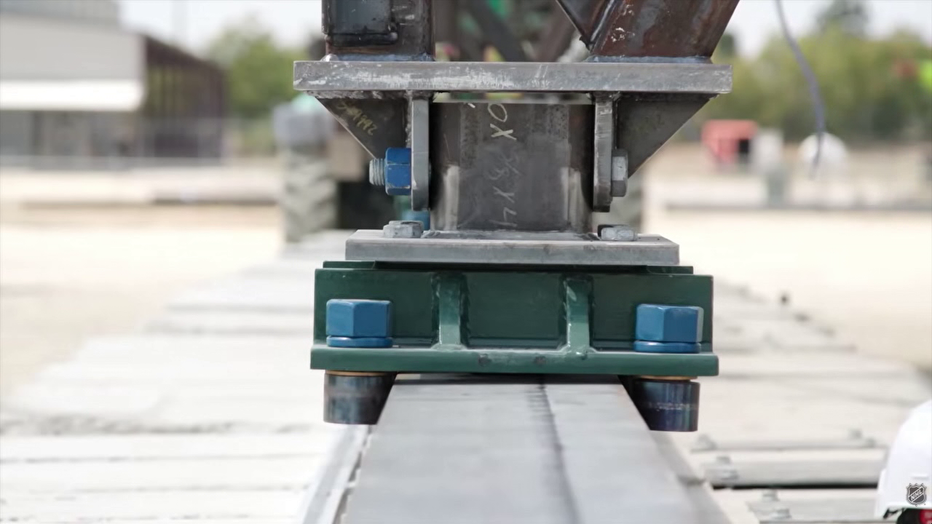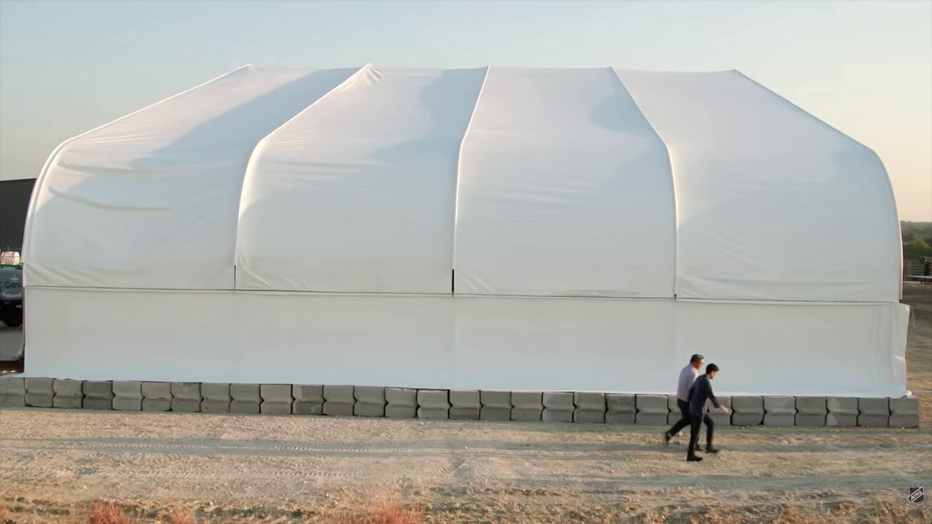 First, a steel frame needs to be built to lay down the ice and to protect it from Florida weather. Think of it as a refrigerated tent, which will be removed closer to game day.