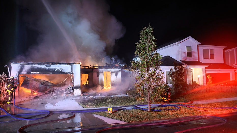 Just before 12:50 a.m., crews said they received multiple 911 calls reporting the home fire on Mile Marsh Drive in Riverview. Firefighters said they found a two-story home fully engulfed and threatening a neighboring home.