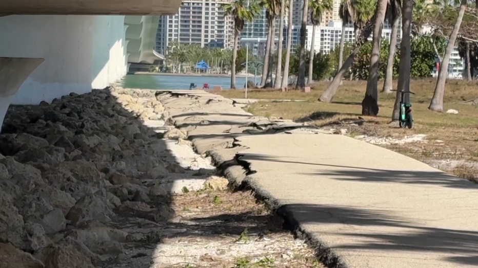 The city of Sarasota said erosion from Hurricane Milton shifted the ground where a wastewater valve was located.