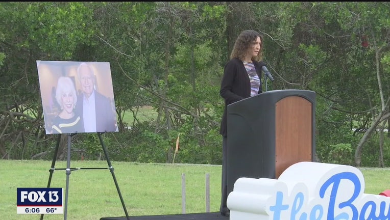 Away from the hustle and bustle of downtown Sarasota, Charles and Margery Barancik's daughter-in-law Rebecca spoke from the heart Friday as a crowd gathered to break ground on the Mangrove Bayou Walkway.