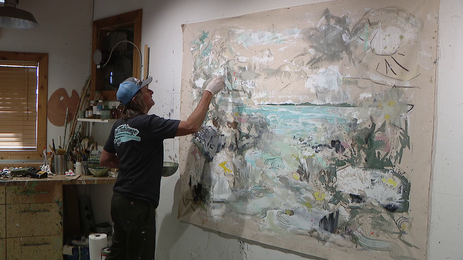 "I just come in here and work on these very spontaneously, and they change overtime," Stephens said as he walked into his art studio.