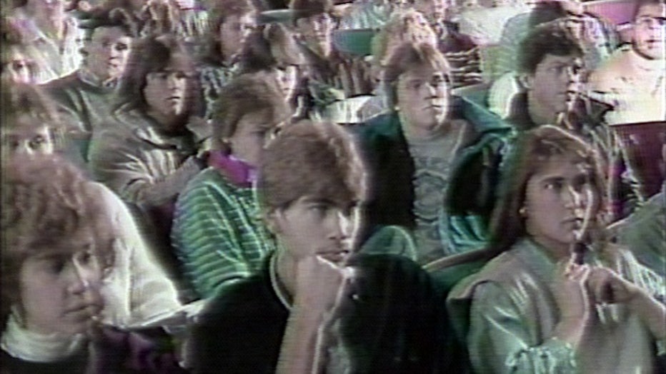 Students at Concord High School watch the Challenger explosion, uncertain about what is happening. (FOX archives)
