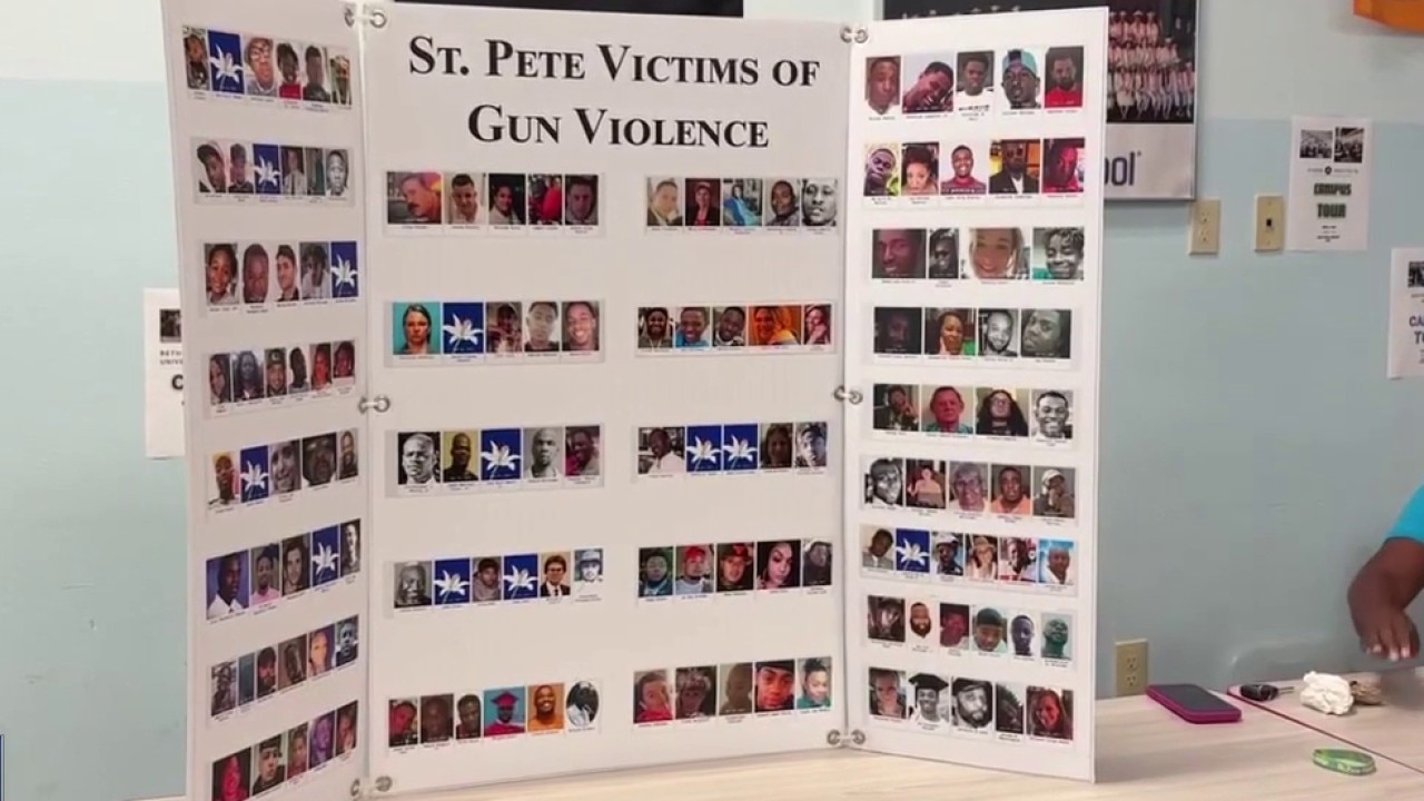 On Thursday, the training arrived at Pinellas MYcroSchool. The program is immersive and features testimony from the families of victims and the families of convicted shooters. Scott also displays a board covered in photos of local victims. For some students, the images aren't just statistics. They are family members and friends.