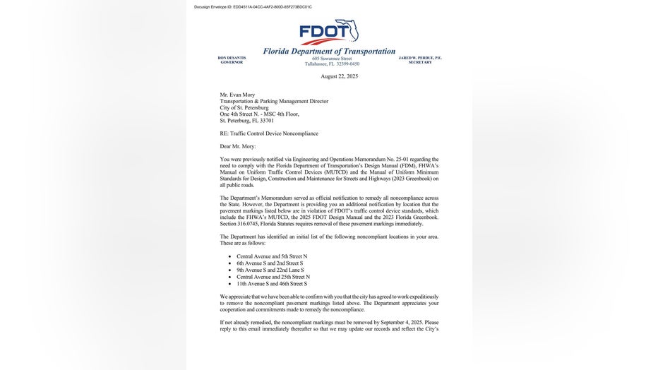 In the city of St. Pete's letter to the FDOT this week, it said crash data showed that certain street murals on its roadways aren't a safety risk.