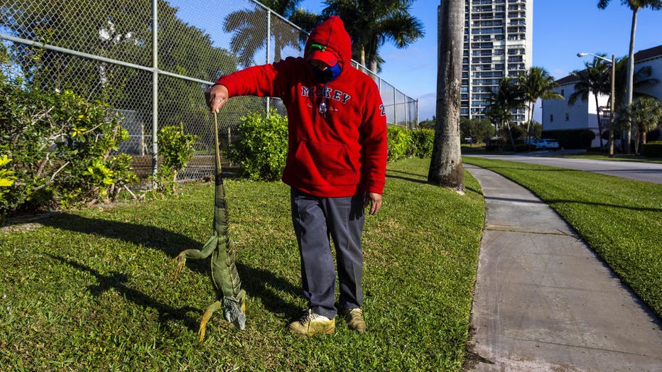 State's rare freeze gives residents and visitors green light to collect stunned invasive iguanas