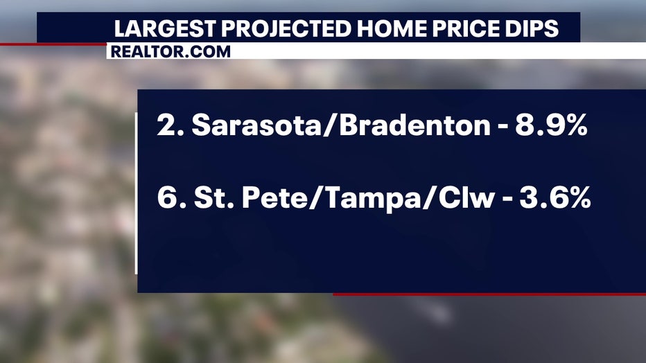 Realtor.com ranked U.S. cities by where home prices are projected to fall the most. Several of the top 10 are in the Tampa Bay area.