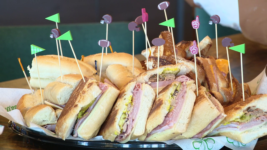 "We have our sideline sandwiches," Carricato said. "Over here, you'll see we have an assortment of different sandwiches. We have some ham, we have some turkey. Once again, easy things you can do at home. Take these little picks that you can buy online or down at the local grocery store."