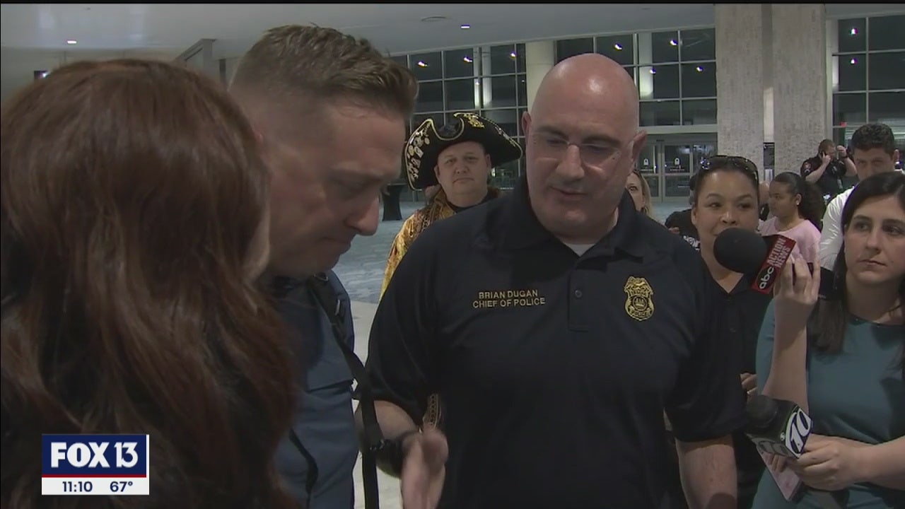 After spending nearly a year serving in the Middle East, Lieutenant Travis Maus was welcomed home by family, friends, and the chief of police at Tampa International Airport Friday evening.