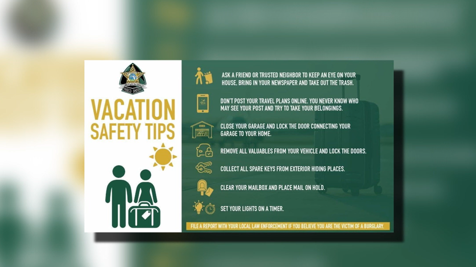 Pasco County Sheriff's Office also shared tips for when you’re traveling, like collecting spare keys from outside, locking the door connecting your garage to your house and asking a friend or trusted neighbor to watch your house.