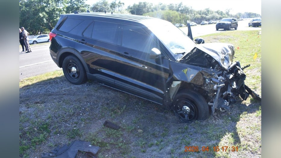 As the driver made a U-turn at the intersection, troopers said she turned in the path of a Temple Terrace police officer who was driving a TTPD Ford Explorer that had been traveling westbound in the center lane of East Fowler Avenue approaching North Drive.