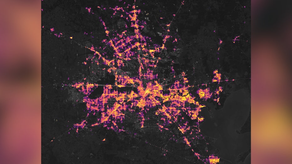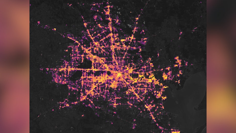 Satellite image captured of Houston, Texas on Feb. 7, 2021. (NOAA–NASA Suomi NPP satellite)