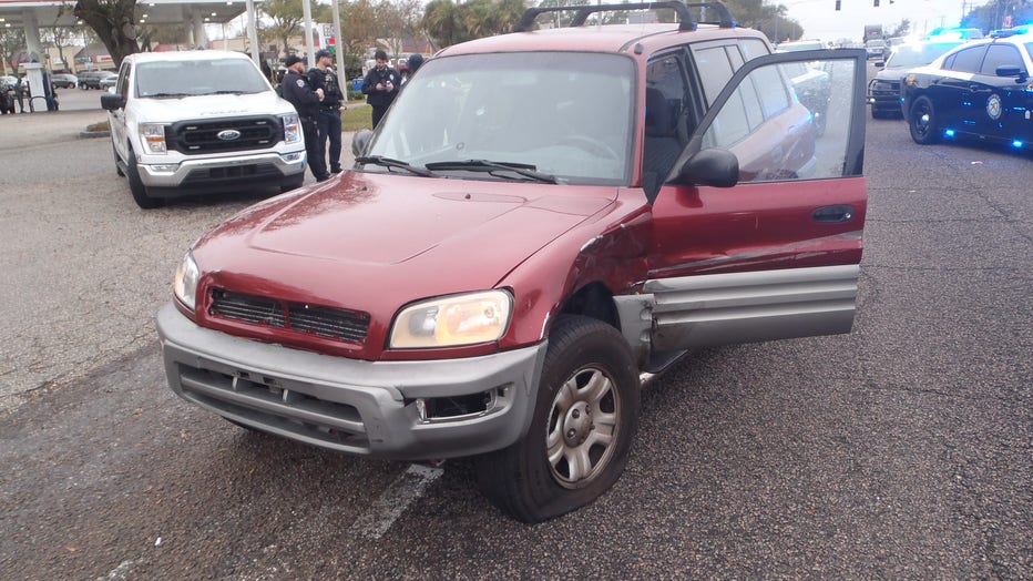 Officials say a red Toyota RAV4 was turning right from northbound 56th Street to eastbound Fowler Avenue.