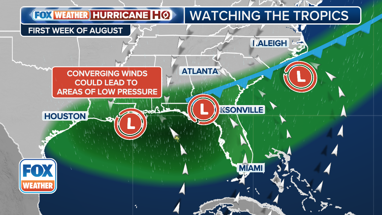 The other area getting some attention for potential tropical development exists along the Southeast and Gulf coasts of the U.S.
