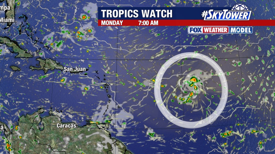 While in the short-term it's battling dry air, Rhodes says it will eventually track into a more favorable environment with warmer sea surface temperatures as it nears the Leeward Islands.